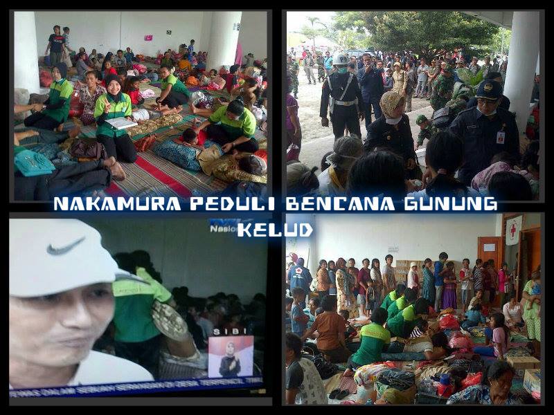 Nakamura (kediri) pun terpanggil untuk membantu meringankan beban para pengungsi dengan mengadakan terapi amal. Terapi amal dilakukan pada hari senin, 17 Februari 2014 pada pukul 08.00 sd 12.00 di Posko pengungsian Masjid Annur Pare. Kurang lebih 200 pengungsi merasakan terapi Nakamura, kebanyakan para lansia, ibu-ibu sampai anak-anak. Pasien kebanyakan memiliki keluhan capek dibagian punggung, pinggang, dan kaki ,dan sebagian mengeluh sakit kepala, karena terlalu banyak aktivitas yang dilakukan di barak pengungsi. Adapun respon dari para pengungsi sangat senang, dan mereka berharap bisa diadakan lagi terapi amalnya. Petugas posko dan para sukarelawan menyambut baik terapi amal yang diadakan oleh Nakamura Kediri. Harapannya Nakamura bisa berbagi kebahagiaan bagi para korban bencana alam dan sedikit meringankan beban mereka. NAKAMURA untuk sesama.